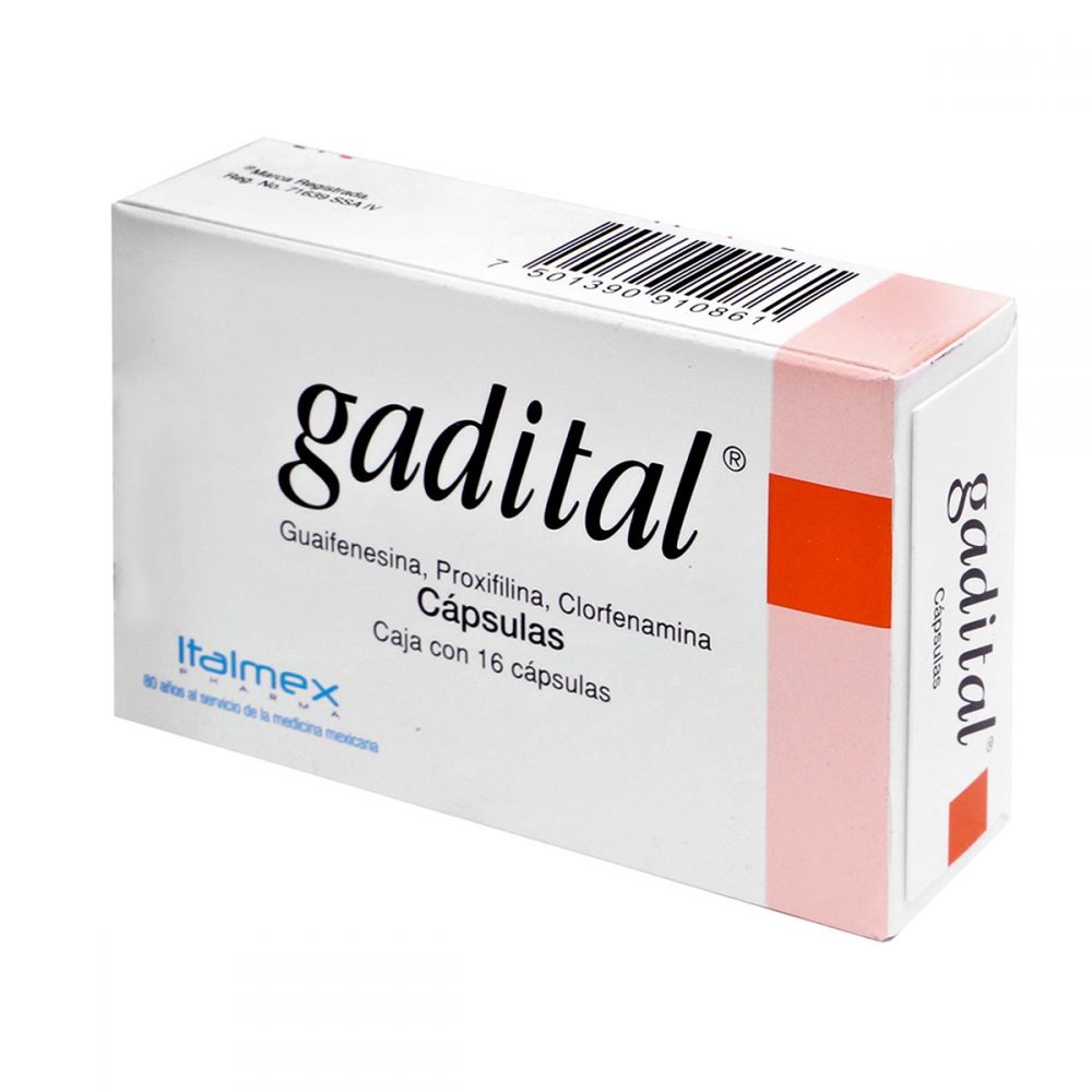 Guaifenesin 150 mg Proxyphylline (hidroxipropilteofiline) 25 mg 2 mg chlorpheniramine maleate If its all the same to you guide your specialist before taking any medication. ENZYMATIC GADITAL. Relieving, bronchodilator. Expectorante. Enzymatic Gadital may moreover be used for purposes other than those recorded in this arrangement guide.