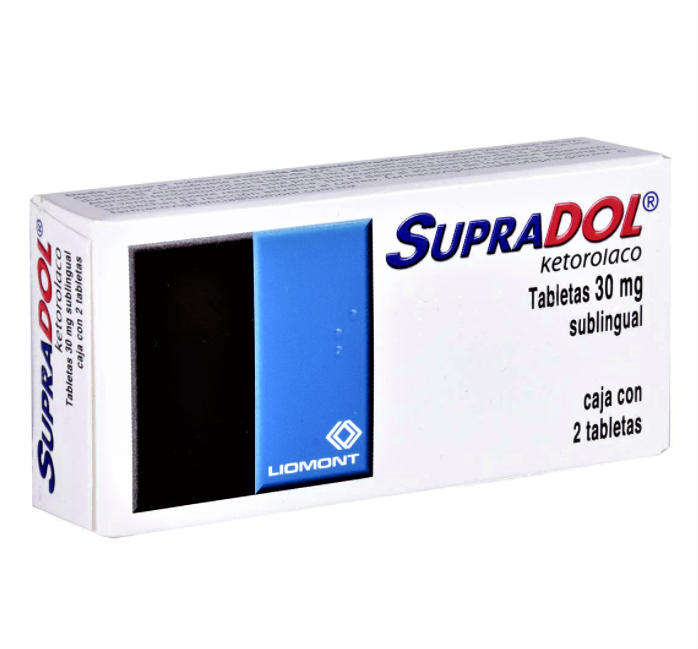 Supradol Ketorolaco 30 mg sublingual are supplied in boxes of 2, 4, or 6 tablets. Recommended dosage: For adults, the dosage is 30 mg 1-2 times per day. Not suitable for children under 12 years of age. When taken orally, the duration of the course should not exceed 5 days.